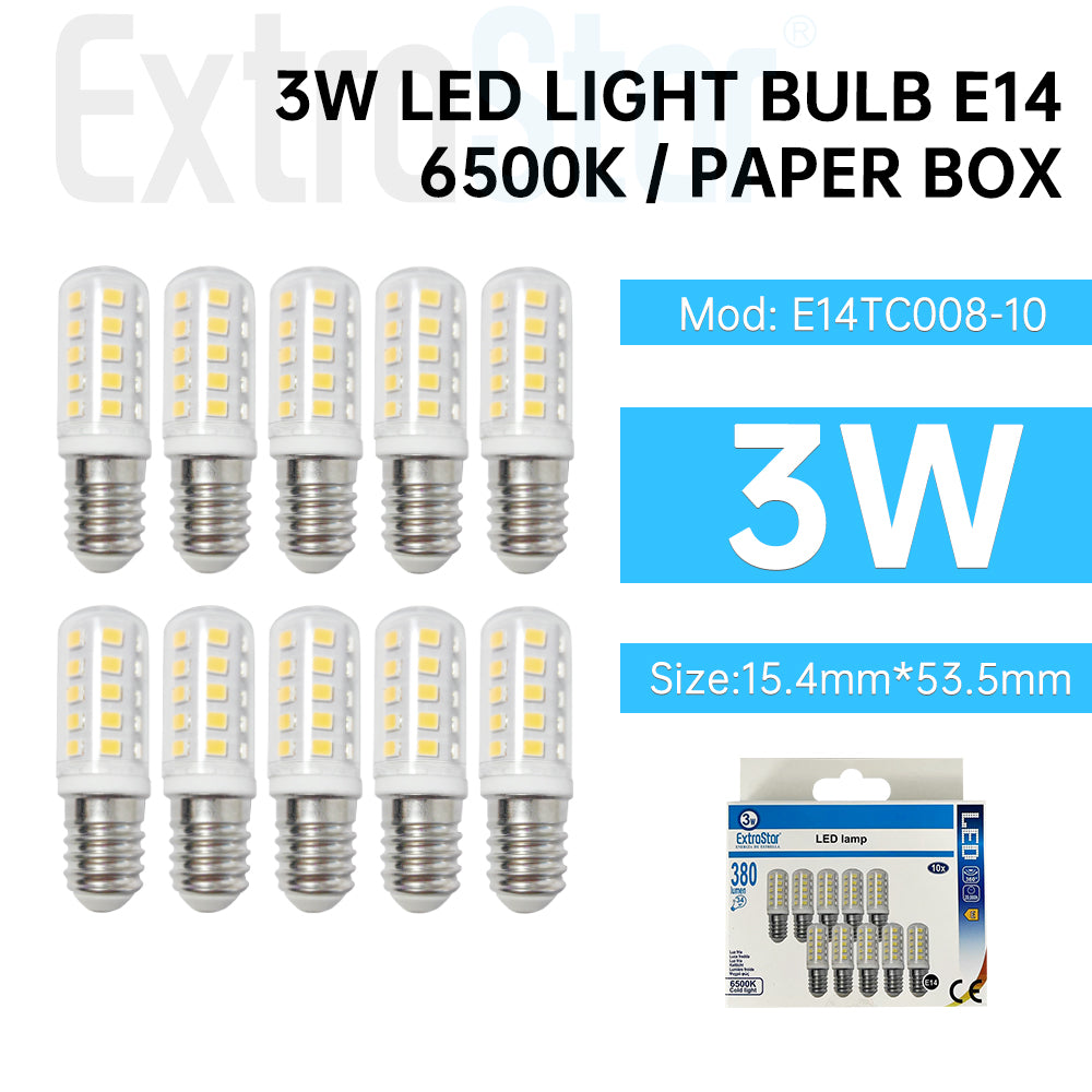 3W LED Mini Bulb E14, 6500K, Pack of 10 (AE14TC008-10)